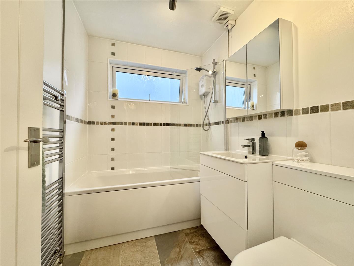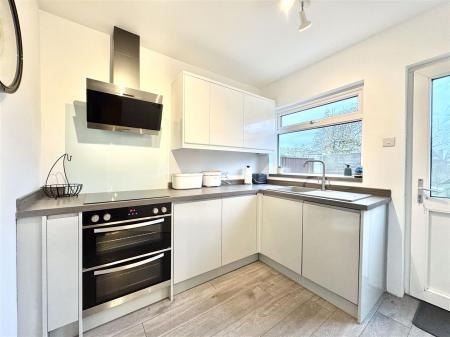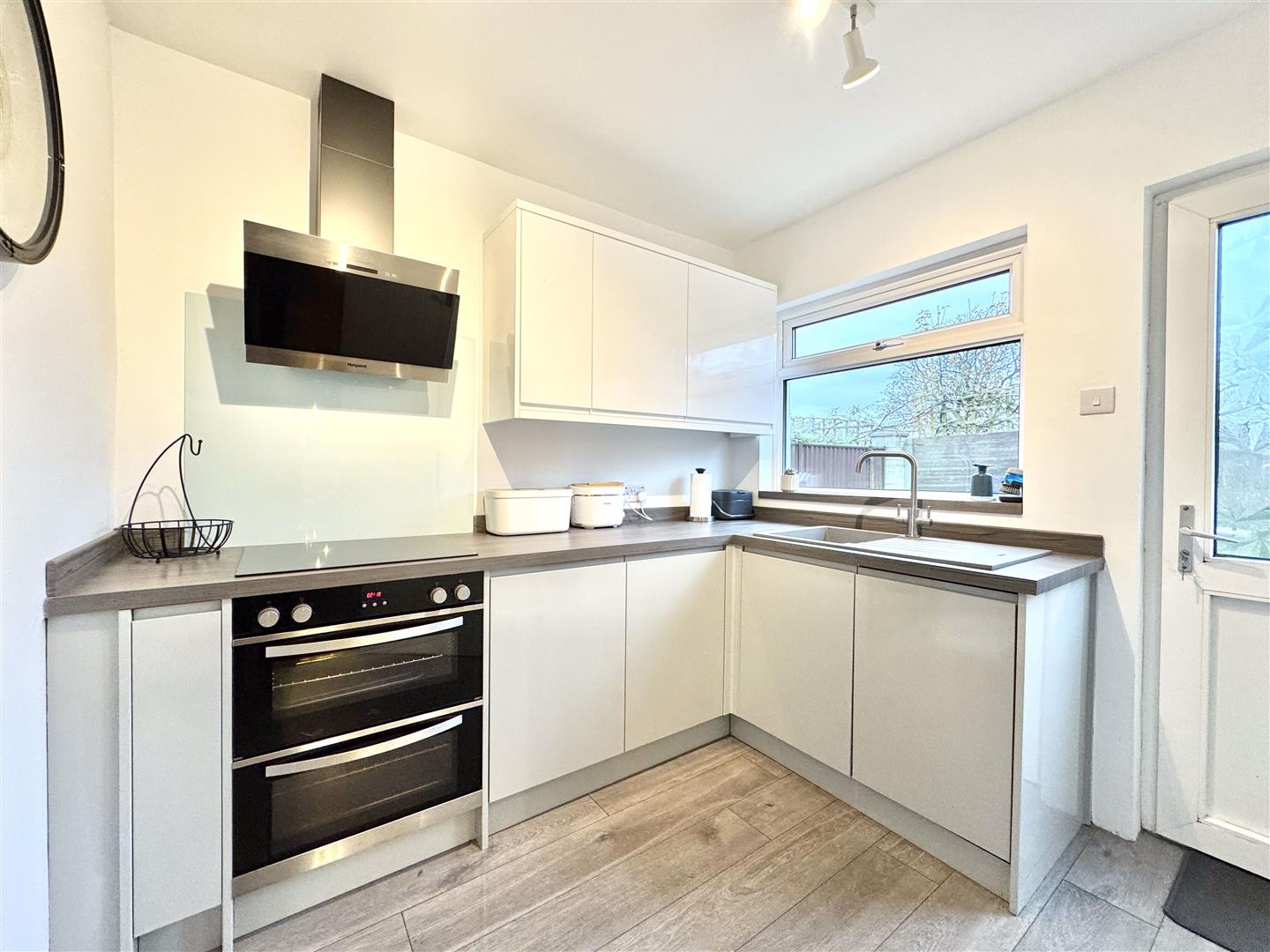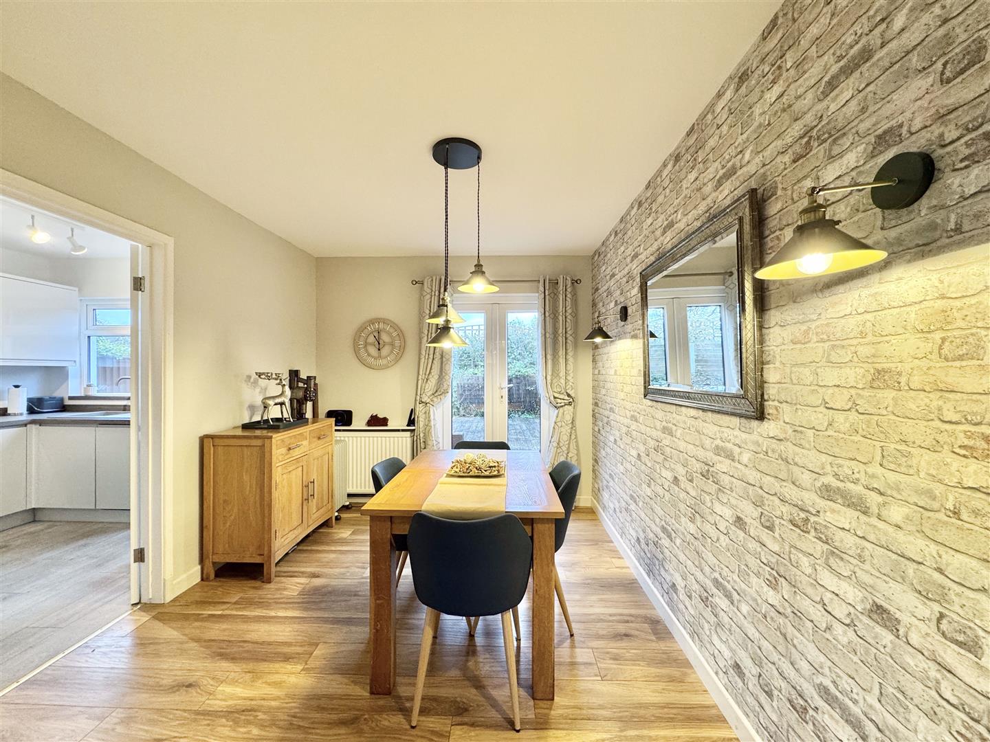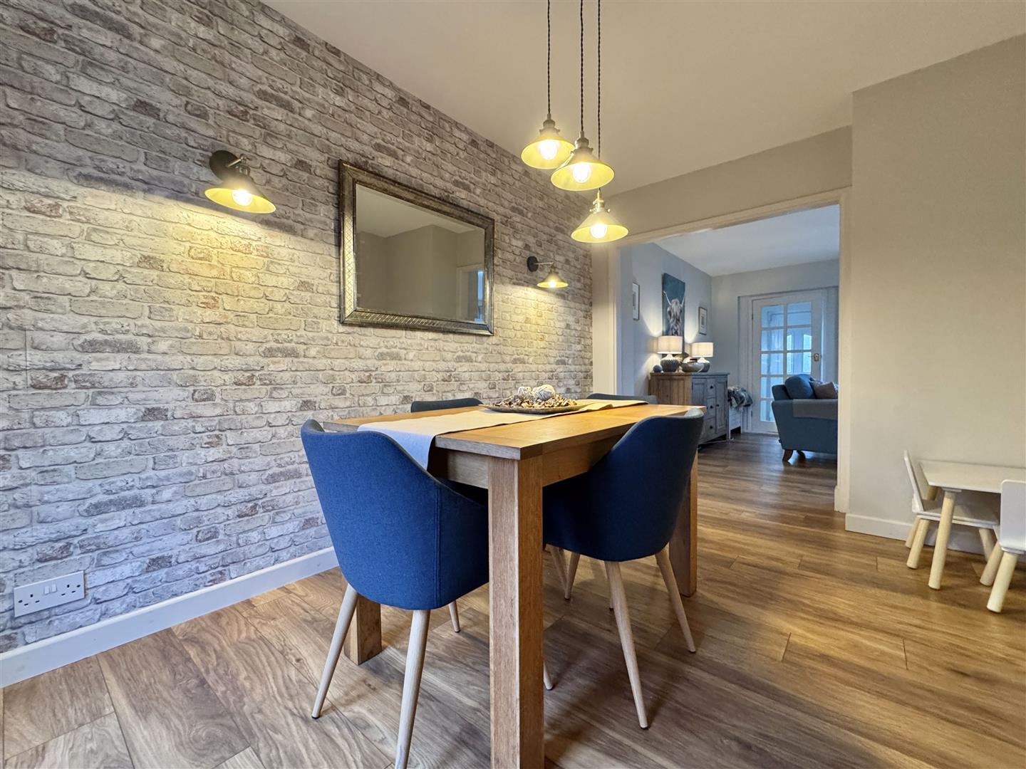 This three bedroom link detached family house is beautifully presented inside and offers spacious updated accommodation with a refitted kitchen and refitted bathroom. The property is located in a cul-de-sac not far from the centre of the village and has off street parking (in addition to plenty of on street parking) and a garage. To the front of the property there is a useful and spacious entrance porch with a multi pane glazed door opening to a large l-shaped open plan living and dining room. There’s practical hard flooring and smooth skimmed ceilings and the multi fuel stove makes a cosy focal point and heart to this spacious home. The kitchen has been refitted with a range of grey and white gloss handleless base and wall units with laminated work surfaces and an electric oven, ceramic hob and extractor fan built in. Also integrated is a built under fridge and a 45 centimetre dishwasher. Heading upstairs there are three generous bedrooms and the largest bedroom has two windows making dividing the room potentially possible. There is a refitted bathroom with an electric shower over the bath and glass shower screen. The basin and WC are contemporary in style with fitted cabinetry and there is a Chrome ladder style towel rail heater. Outside to the side of the property is a single garage with utility space to the rear where there is space and plumbing for laundry appliances. At the rear of the property is an enclosed garden with lawn and timber decking.