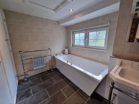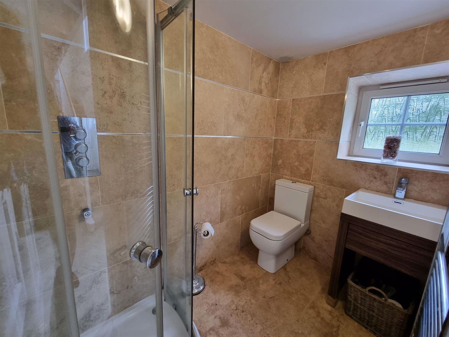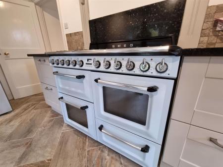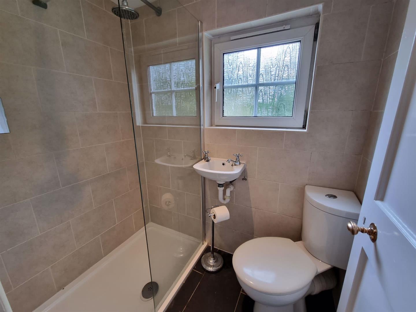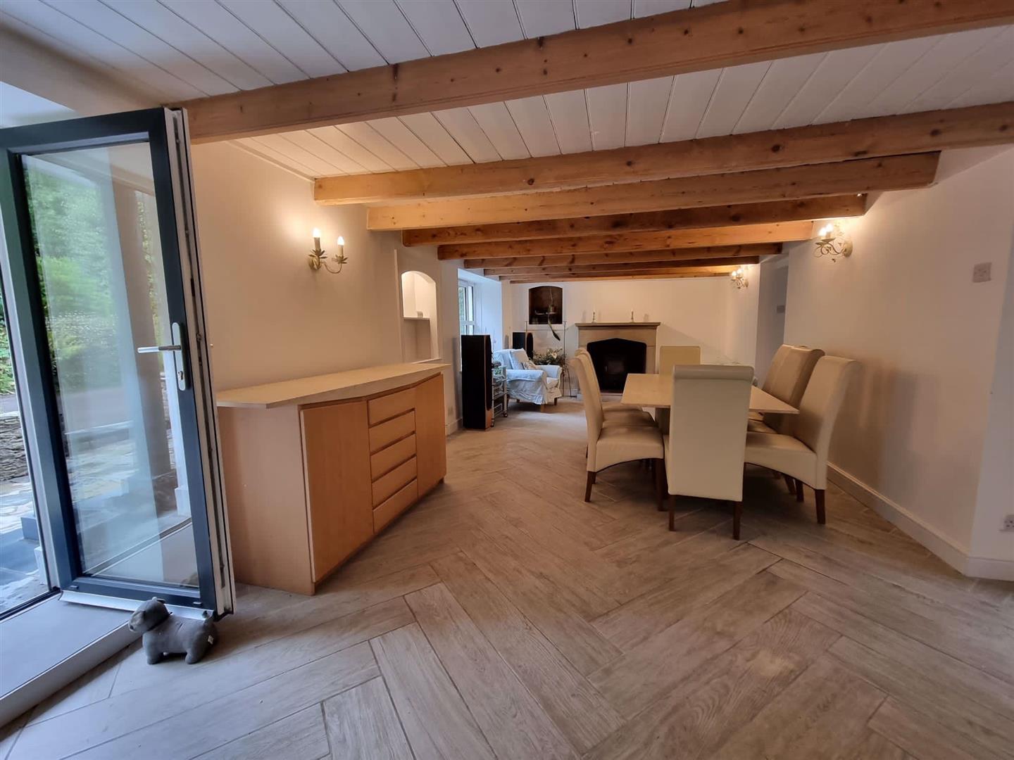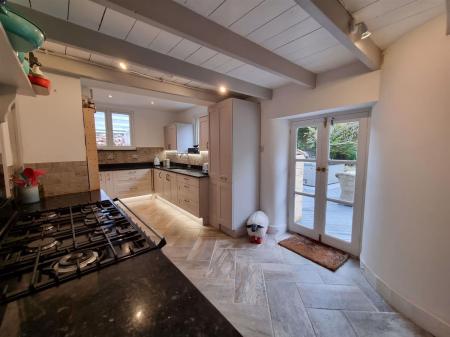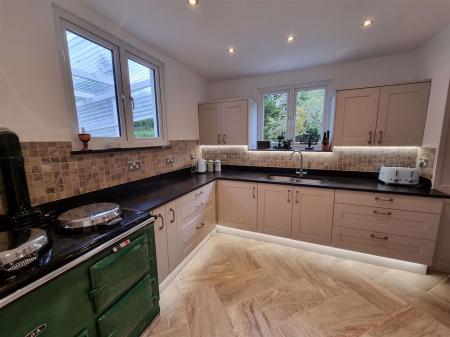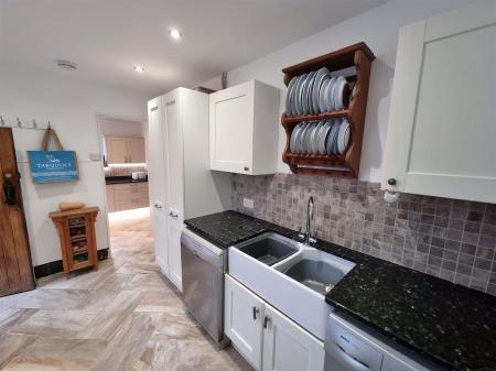 - Kitchen with recently fitted cabinets, worktops and tiling