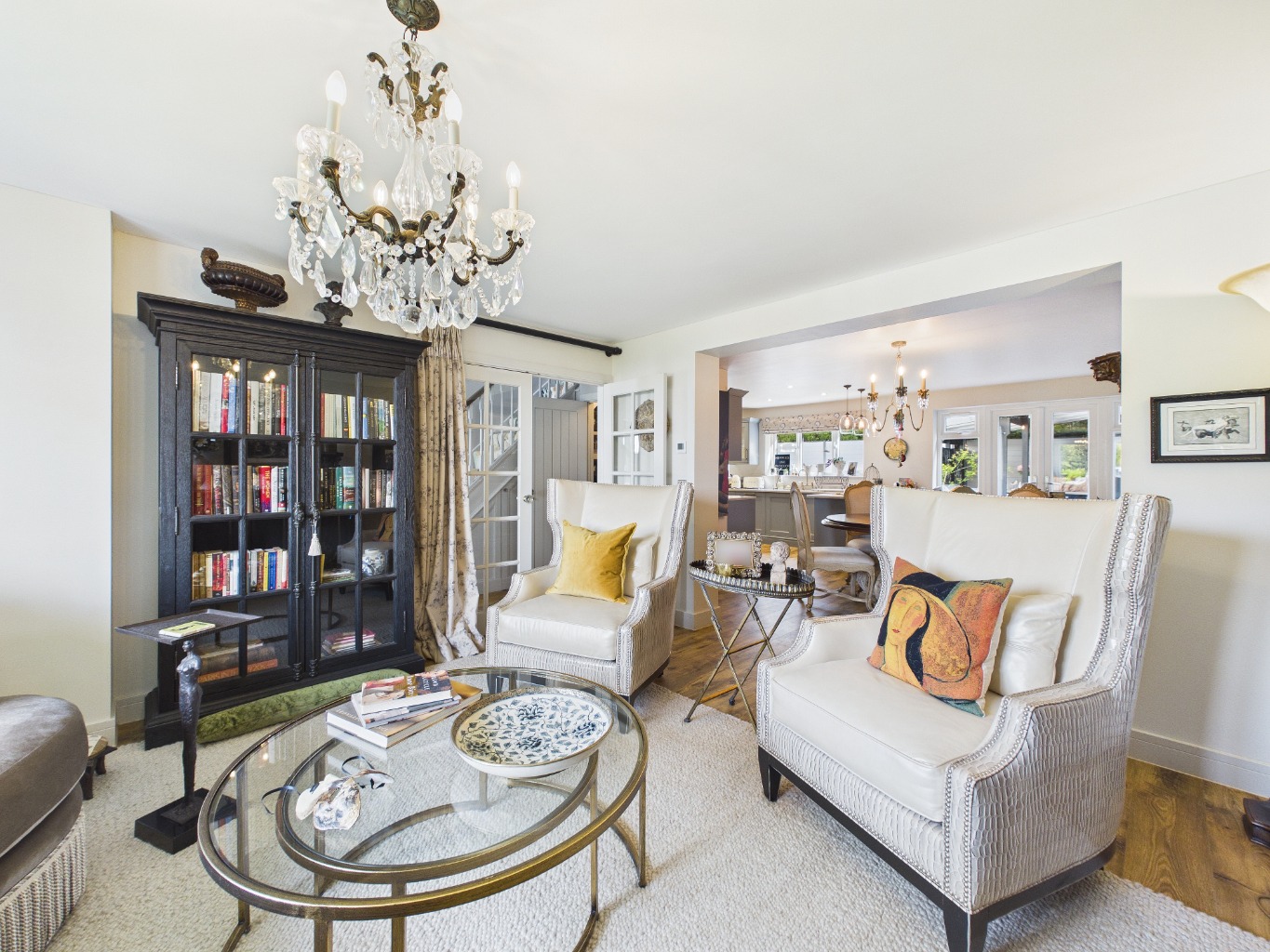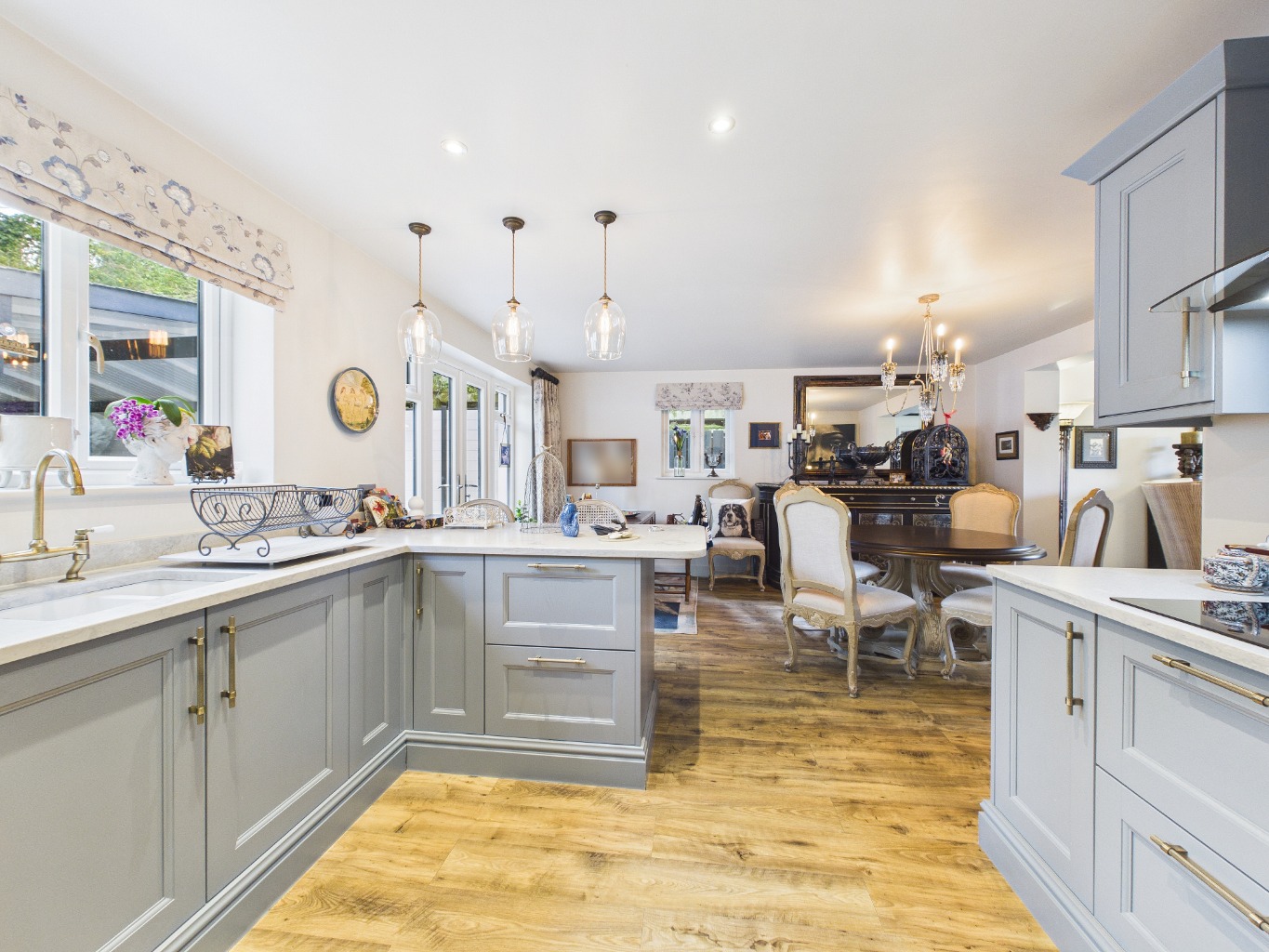 - Spacious L-shaped open-plan living, dining, and kitchen area
