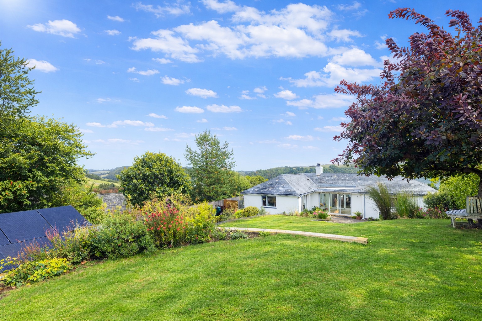 - An energy-efficient home equipped with 14 photovoltaic panels and a battery system, designed for easy maintenance and upkeep.