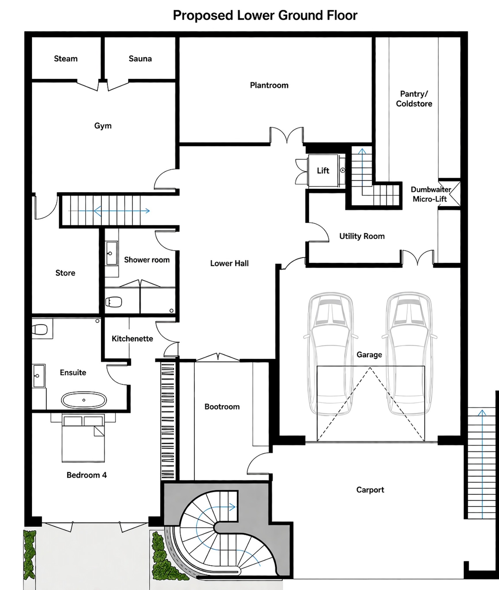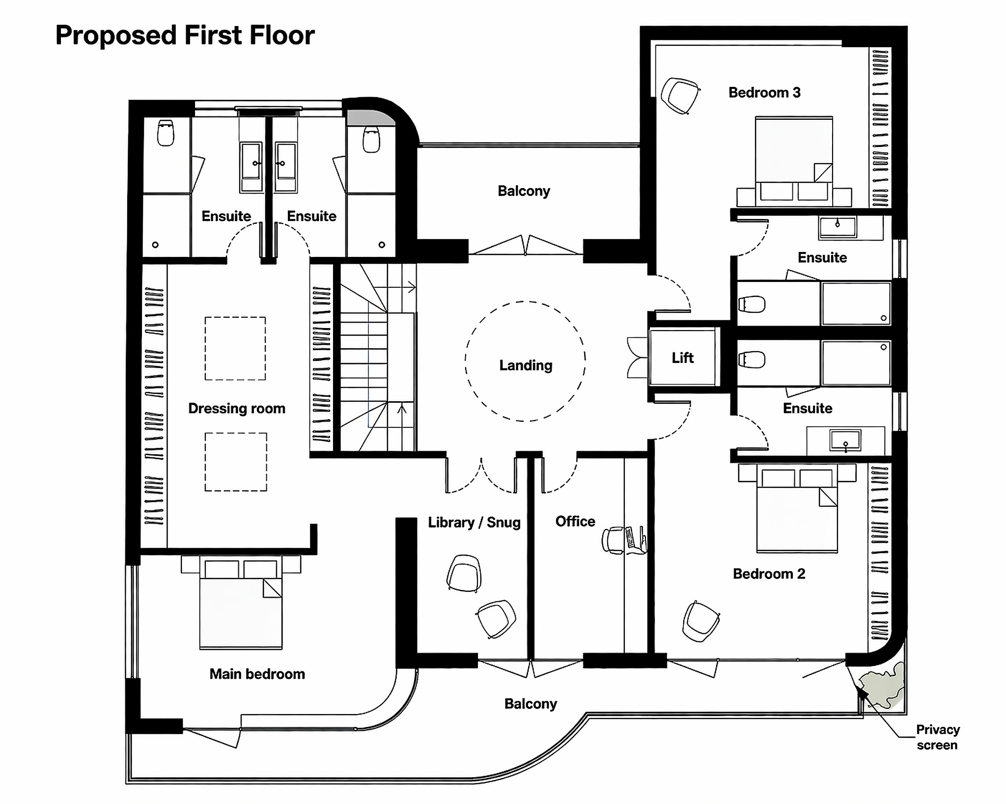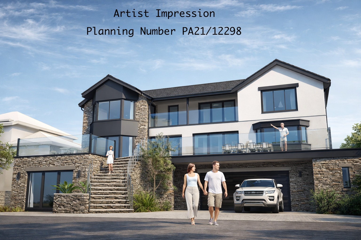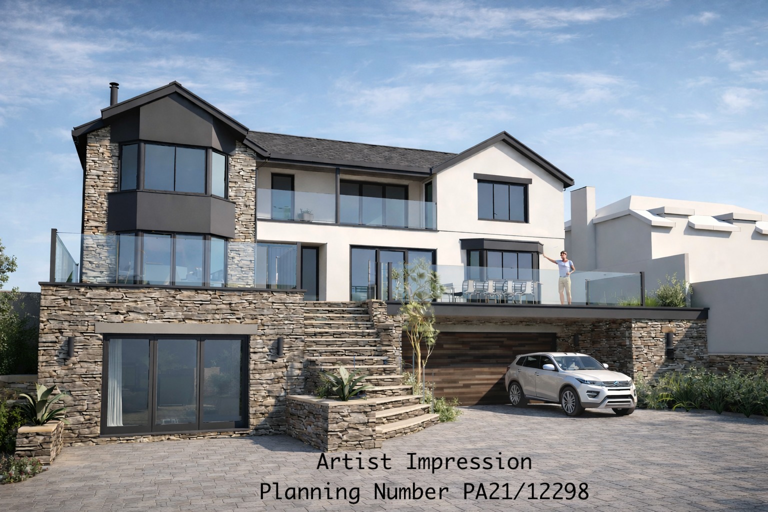 - Full planning consent for a striking three-storey art deco-inspired contemporary home