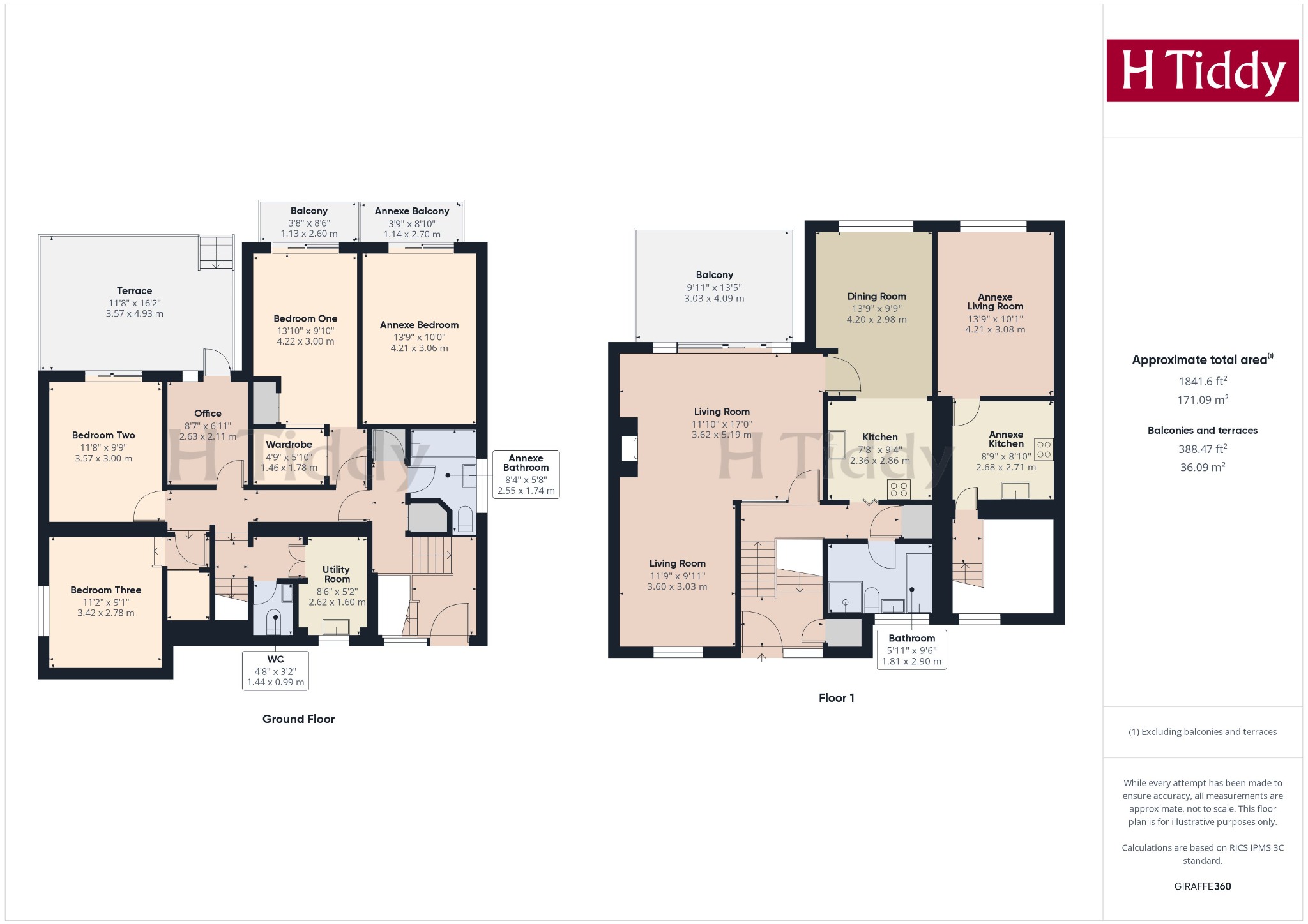 - Annexe includes a private entrance, balcony, kitchen, living room, double bedroom, and bathroom.