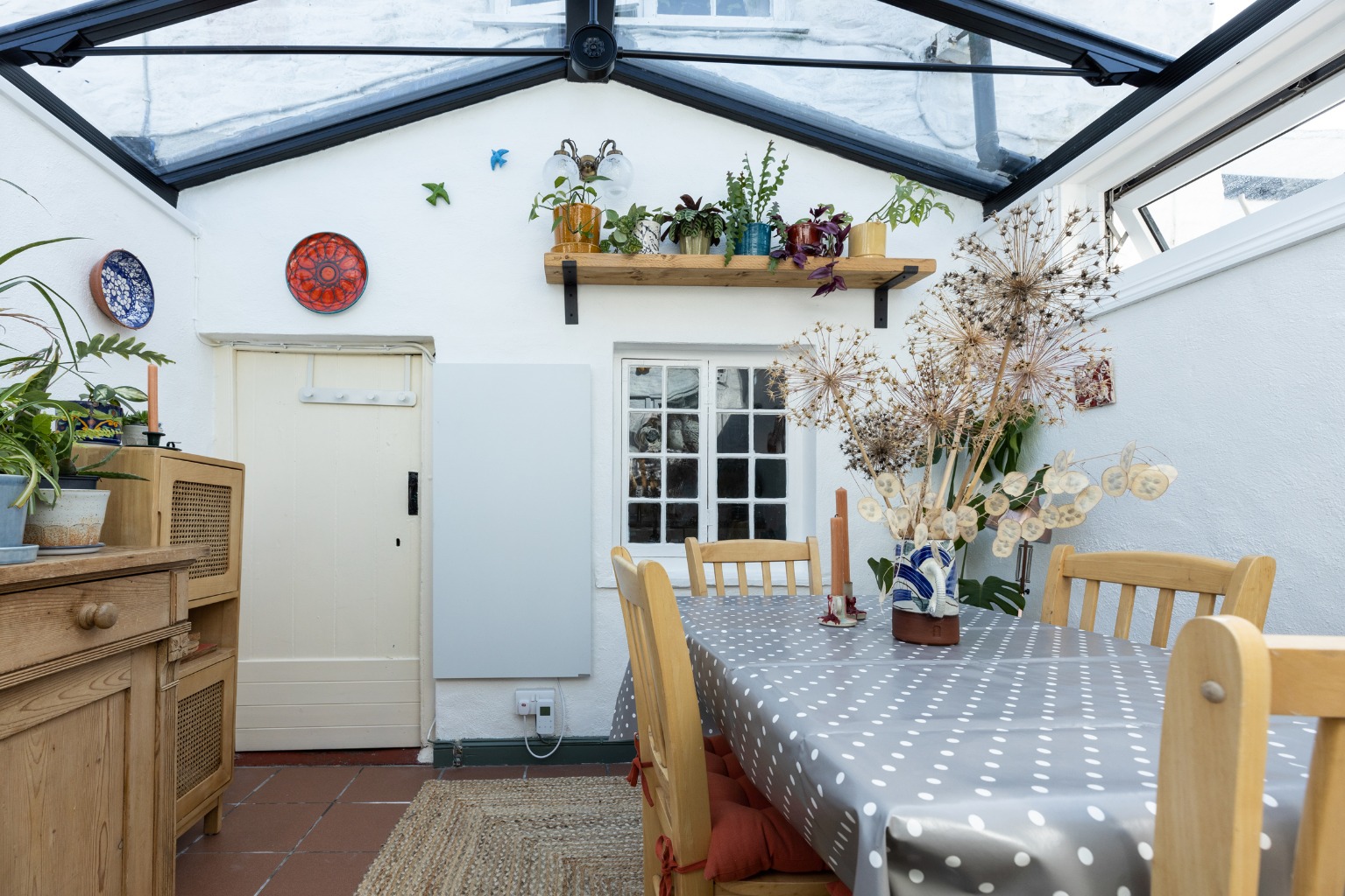 - Living Room with Woodburner. Dining Room with Double Glazed Pitched Roof