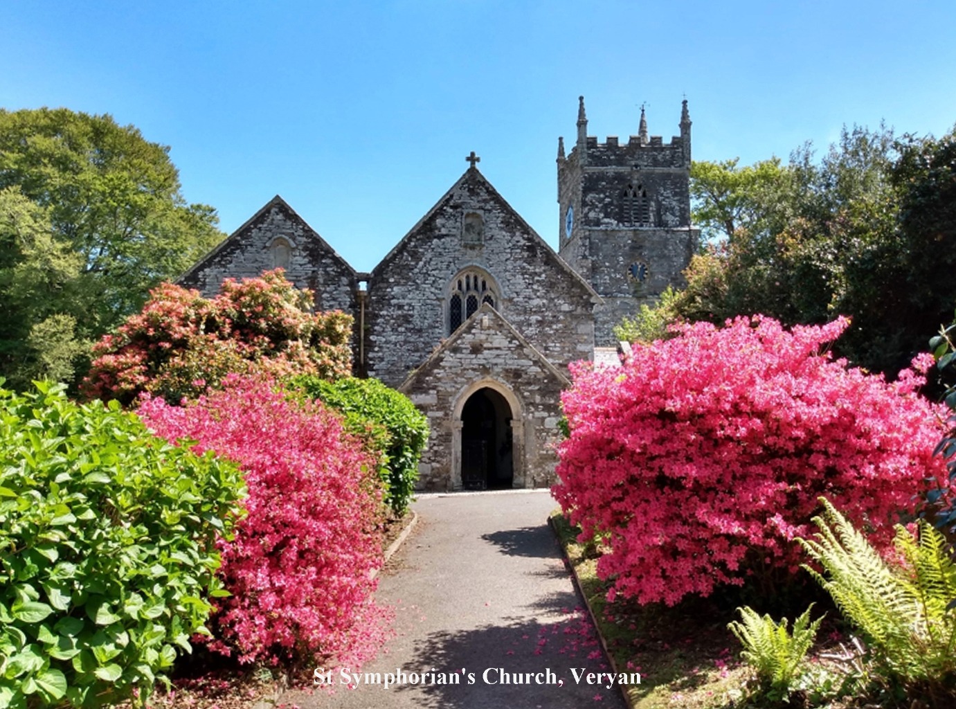 OutsideThe rear garden is a particular highlight, offering a beautifully landscaped space with tiered terracing, lawned areas, Cornish stone walls, and an array of mature plants, including vibrant camellias.