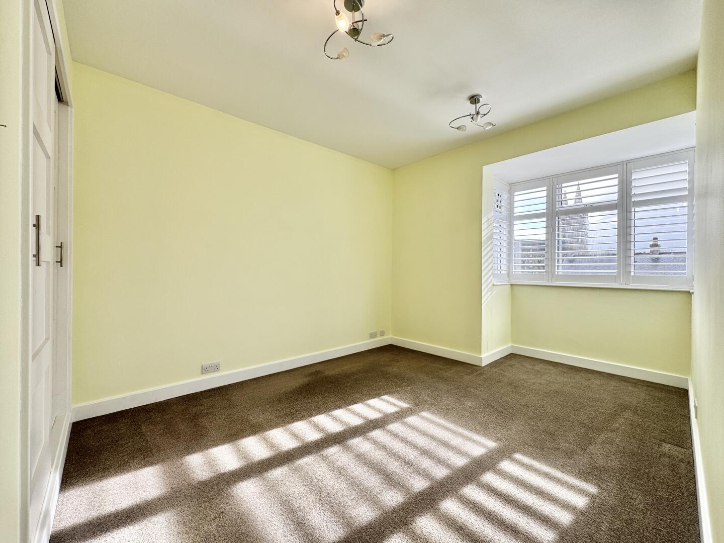 - Stylish plantation shutters included