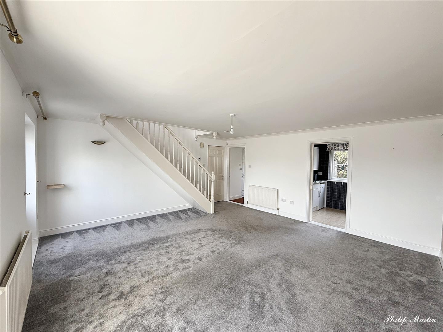 Sitting/Dining Room - 4.97m x 4.85m (16'3" x 15'10") - Spacious sitting/dining room with stairs rising to first floor and doors into;