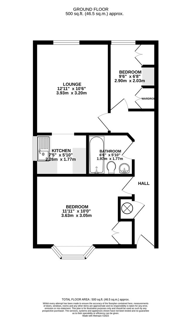 9' 2'' x 5' 11'' (2.8m x 1.8m)