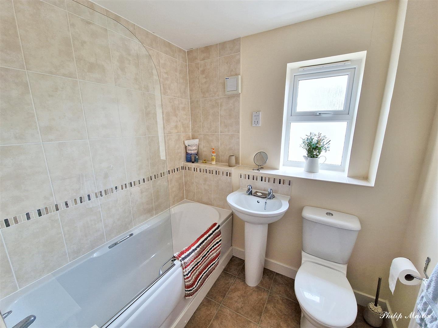 Bathroom - 1.99m x 1.84m (6'6" x 6'0") - White suite with panelled bath and shower over, wash hand basin and low level WC. Extractor fan and radiator.