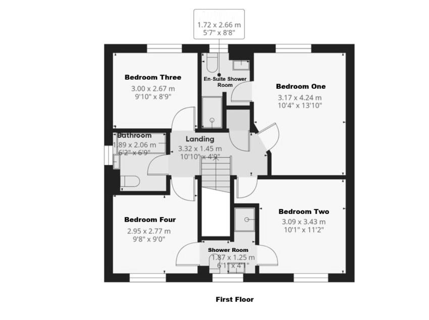 - Four bedrooms plus study
