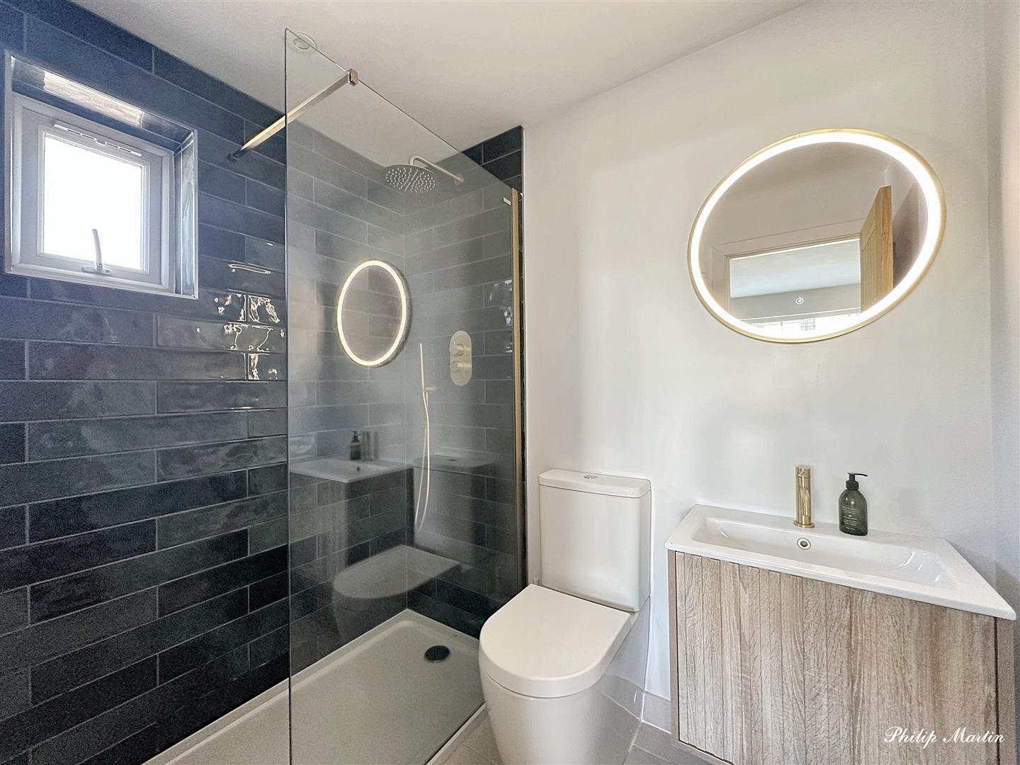 En-Suite - 2.04m x 1.48m (6'8" x 4'10") - Comprising double walk in shower cubicle, hand wash basin and low level w.c. Obscured window to side, heated towel rail and extractor fan.