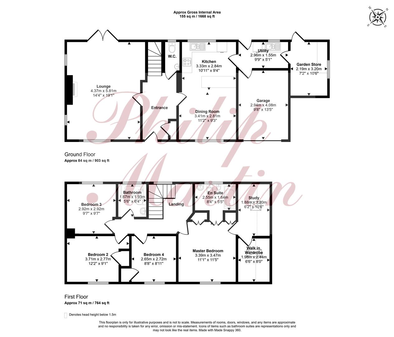4 bedrooms, family bathroom and a master suite with bathroom, study and dressing room. Entrance hall, lounge with stove, kitchen/dining room, cloakroom and utility.