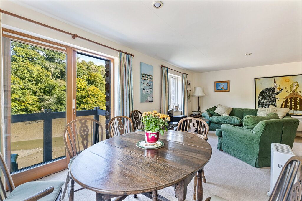 Situated overlooking Bow Creek, a well-presented two bedroom apartment currently used as a second home. The property sits within the village of Tuckenhay and is just a short drive from Totnes town. The apartment comprises large sitting/dining room with balcony enjoying stunning water views, kitchen with integrated dishwasher and fridge, 2 bedrooms, a family bathroom, and utility room with second toilet.