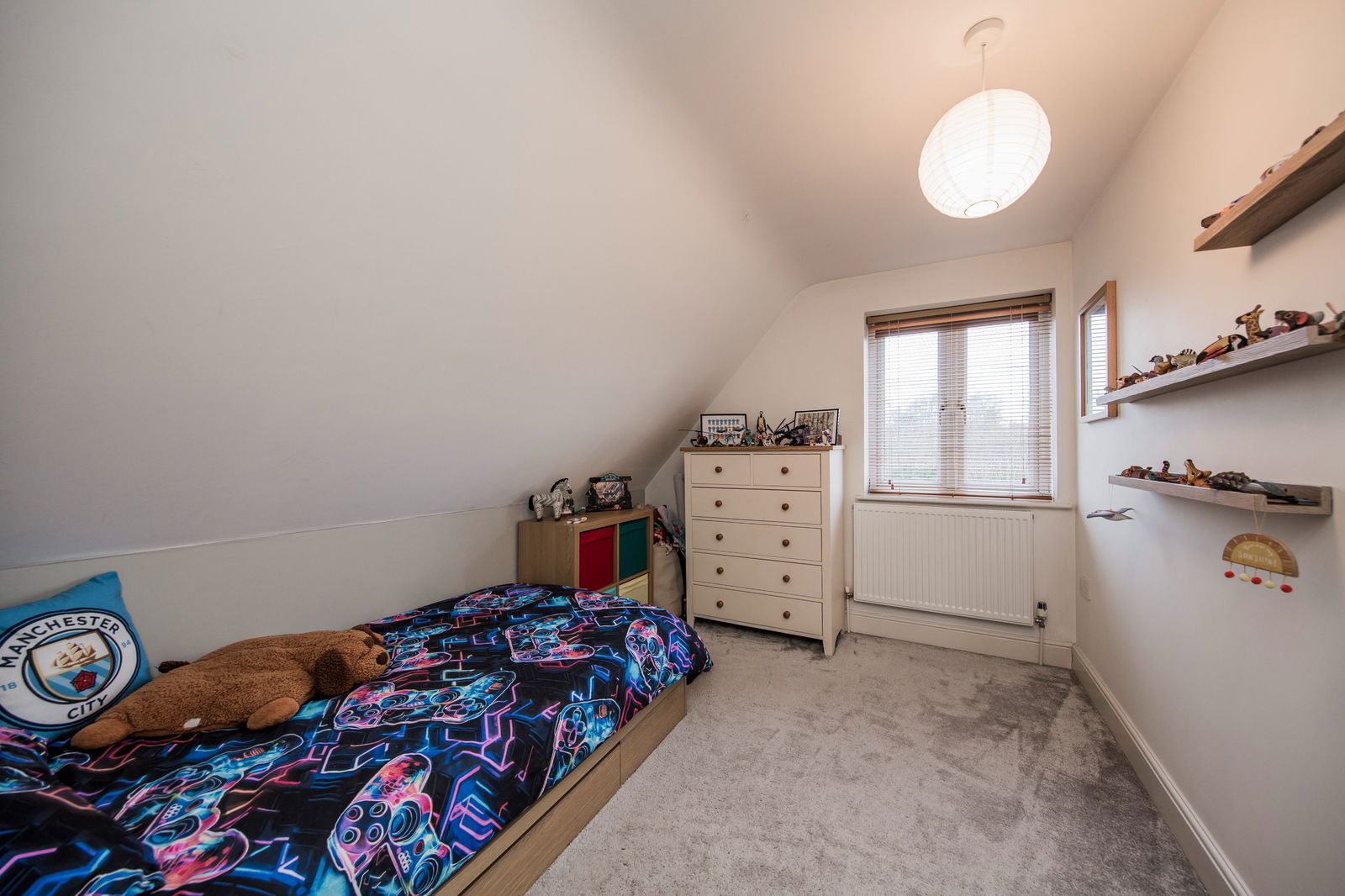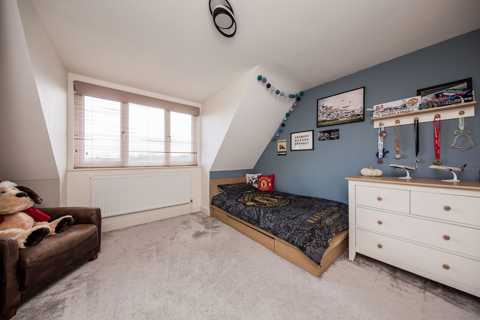 Carpeted, radiator, areas of sloping ceiling back. Space for bed and associated bedroom furniture. Double glazed windows to the front with fitted blind.
