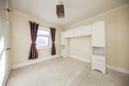 Views over garden, double fitted wardrobe, carpeted, radiator, fitted cupboard over stairs with boiler and loft access, loft has insulation, not boarded.