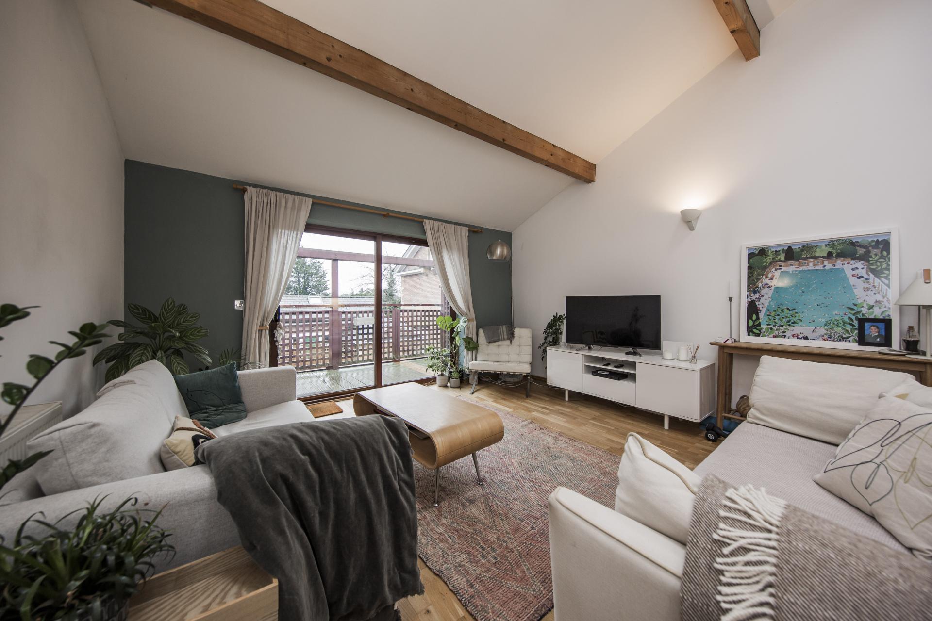 Architect-designed 2-bed home in exclusive gated Boathouse Cottages. Reverse layout with vaulted first-floor living spac...