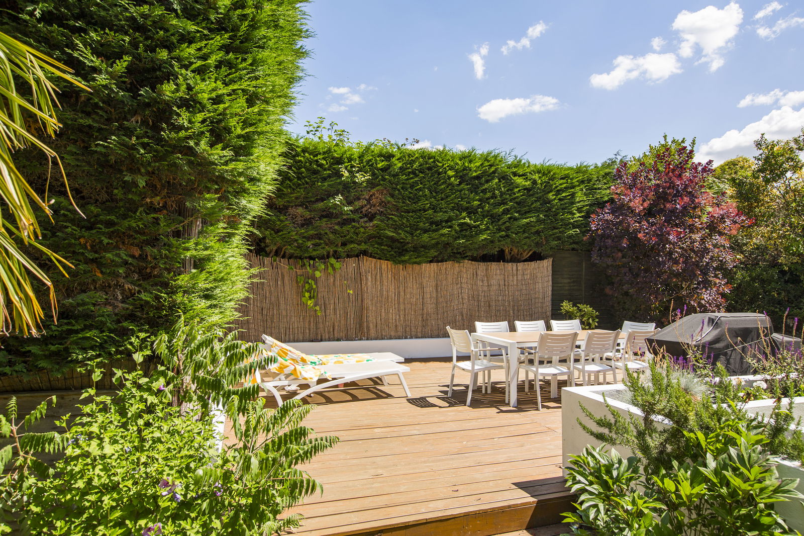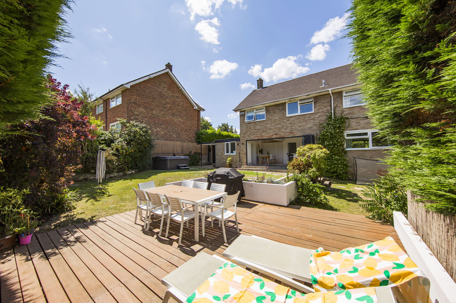 OUTSIDE REAR: The rear garden has areas of paving to the immediate rear of the property affording space for garden furniture and entertaining and is currently being used as space for a hot tub. The garden is principally laid to lawn with a combination of brick and bamboo and wooden fence screening, with further areas of mature shrubs and trees again affording a sense of privacy in this central location. There is a lower maintenance decked area toward the rear with ample room for garden furniture and for entertaining and a lower lawned area adjacent to the aforementioned decked area. External tap.