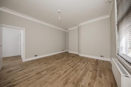 MASTER BEDROOM: A very generous bedroom with tall ceiling, electric ceramic radiator, wooden flooring. Sash window to rear.