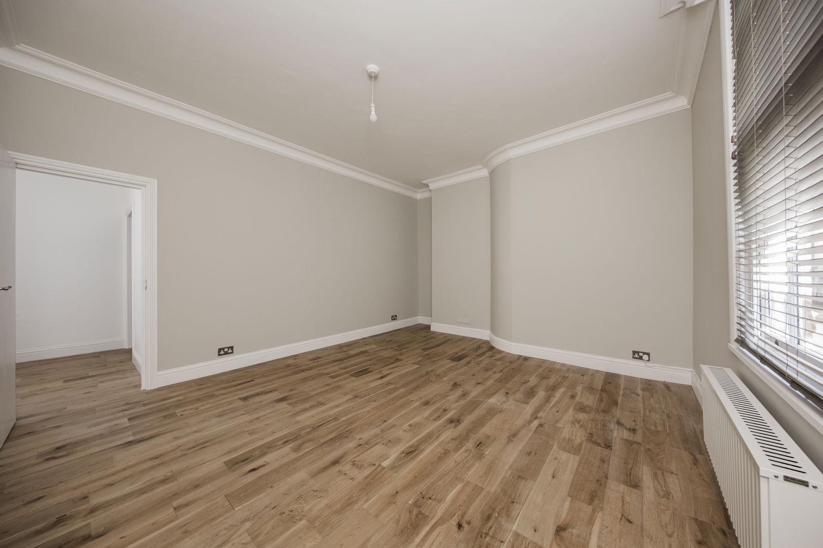 MASTER BEDROOM: A very generous bedroom with tall ceiling, electric ceramic radiator, wooden flooring. Sash window to rear.