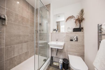 Both double bedrooms benefit from floor to ceiling windows allowing plenty of light in. Bedroom one has a built in wardrobe with both hanging and shelving space and there is also an en-suite shower room.