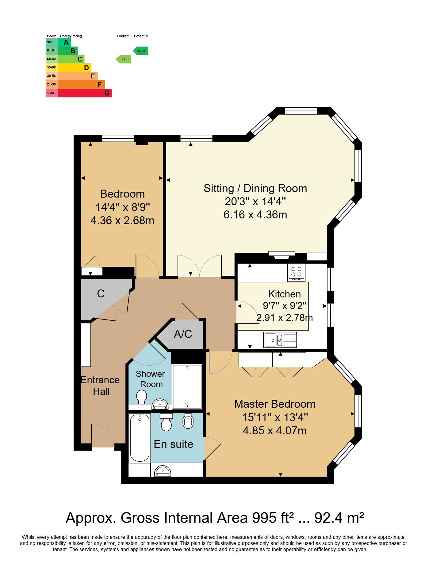Spacious 2-bed second-floor apartment with scenic views, large sitting/dining room with bay window, en-suite master, sho...