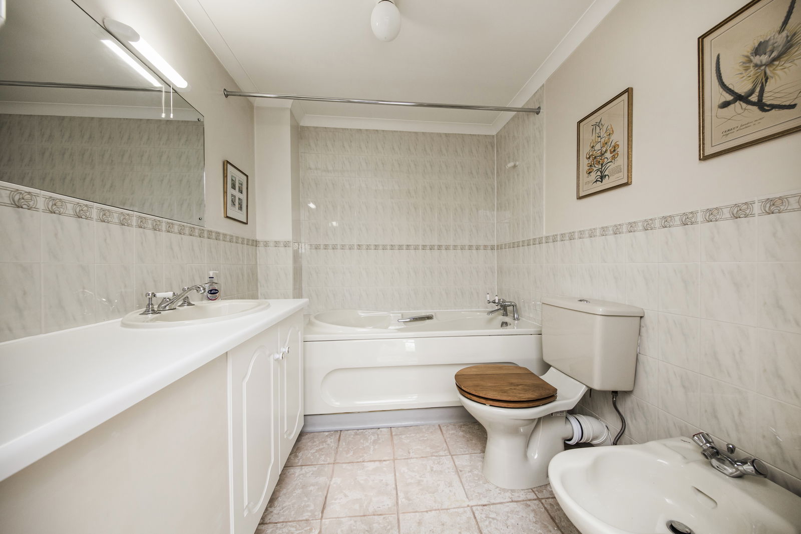EN-SUITE: A generous en-suite with panelled bath and mixer tap, low level WC, bidet, heated towel rail, built in vanity unit with inset wash hand basin, part tiling to walls, extractor fan, vinyl flooring.