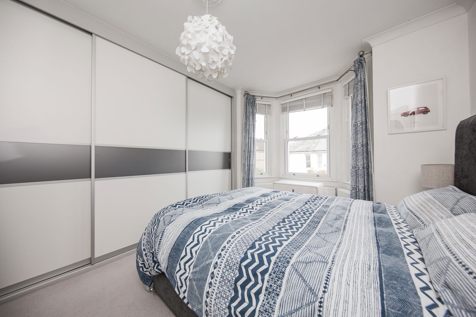 MASTER BEDROOM: A large double bedroom with a good range of built-in wardrobes, radiators. Double glazed sash bay window to front.