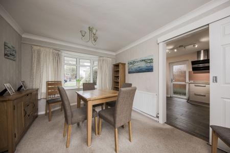 DINING ROOM: Enjoying a double glazed bay window to the front and double glazed sliding patio doors to the rear garden, carpet, radiator.