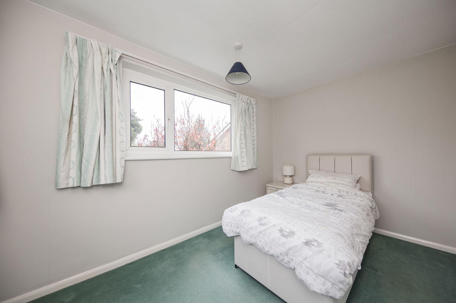 Loft access, built-in store cupboard housing pre lagged hot water tank with shelving above. Two double glazed windows to rear, carpet, radiator.