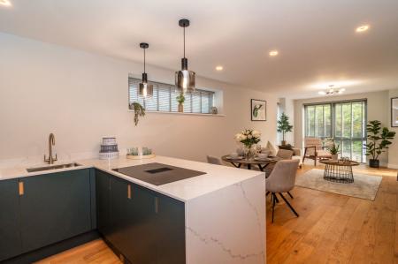 - Fully-fitted kitchen with Silestone worktops and soft close doors and drawers
