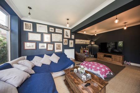 The sitting room, quietly located to the rear of the property, offers another superb family space. With a glazed door leading directly to the garden and a wide picture window bringing in plenty of natural light, this room provides a peaceful retreat for both relaxing evenings and weekend gatherings.