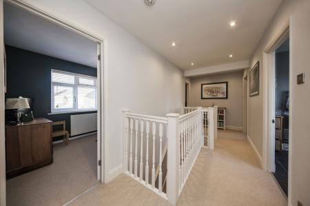 FIRST FLOOR LANDING: Galleried landing, loft hatch, airing cupboard housing the hot water cylinder.