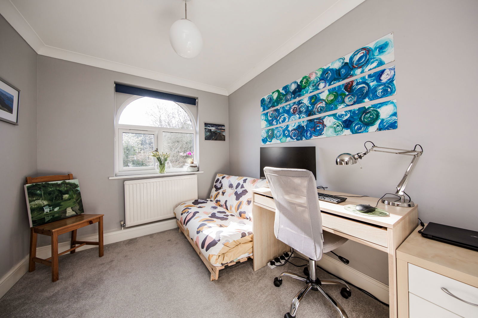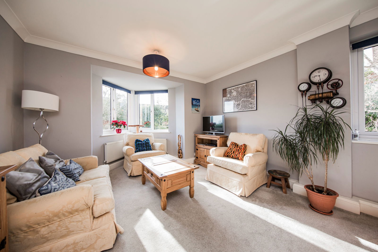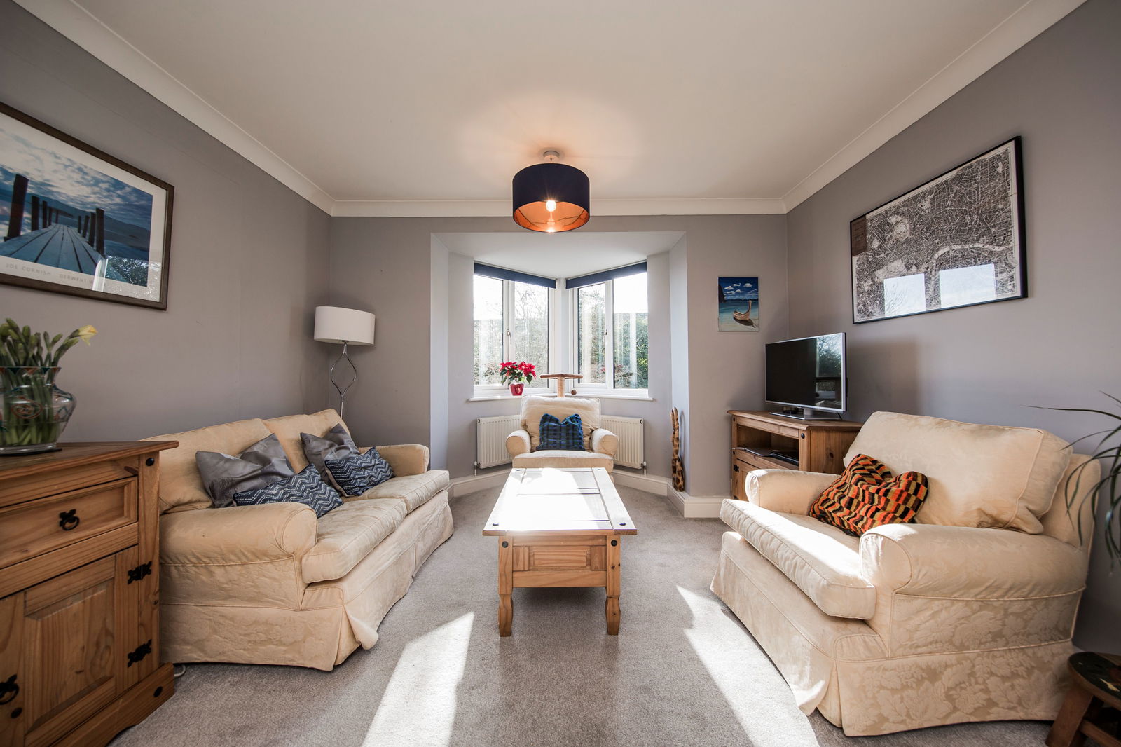 Generous bright and airy living area, with south facing double glazed Oriel window to side and rear and further double glazed window to side. Hive heating control, carpeted, three radiators.