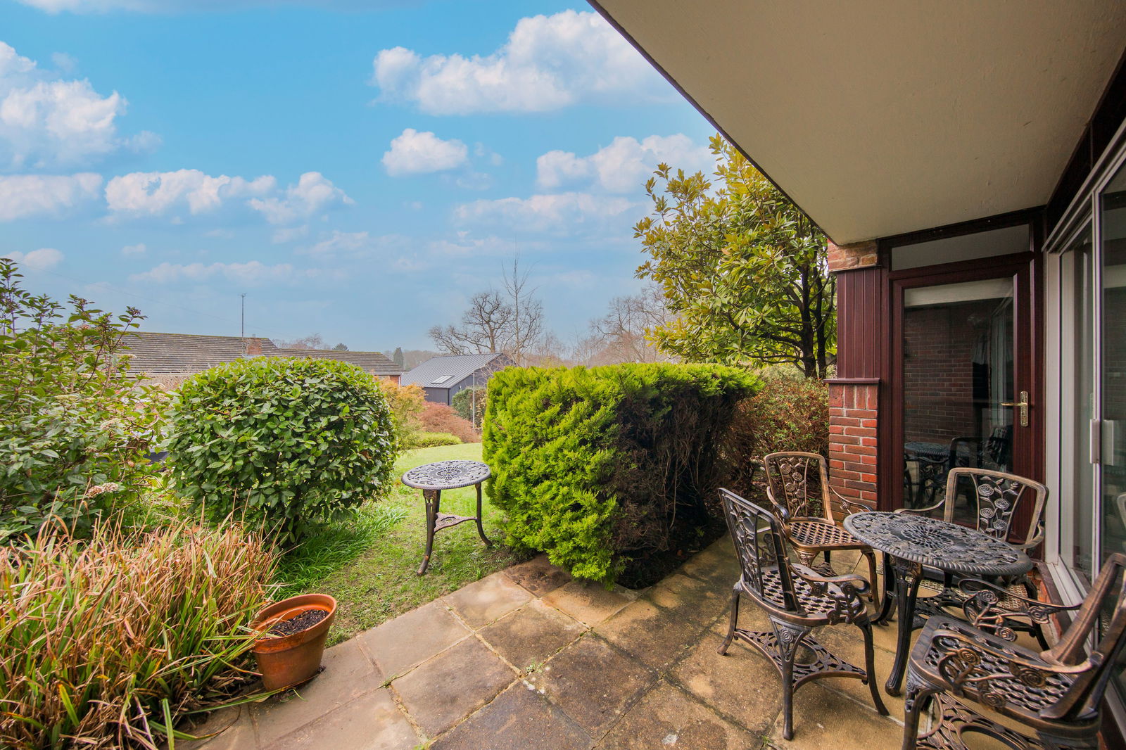 OUTSIDE REAR: To the rear of the property is a private patio area with conifer screening to provide privacy. Parking is available at the front of the development on a first come, first served basis.
