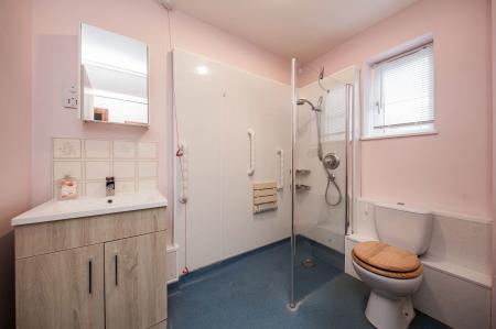 SHOWER ROOM: This has been designed as a wet room and includes a plumbed in shower with glass screen, level WC, wash hand basin with tiled splashback. Single radiator, window.