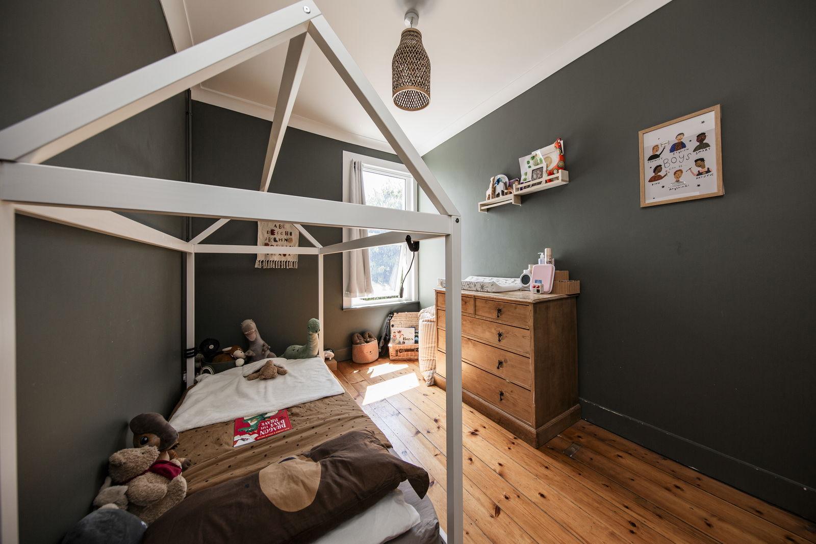 BEDROOM: Good areas of exposed wooden flooring, radiator. Space for bed and associated bedroom furniture and areas of fitted shelving to one side of the original chimney breast. Double glazed window to the rear.