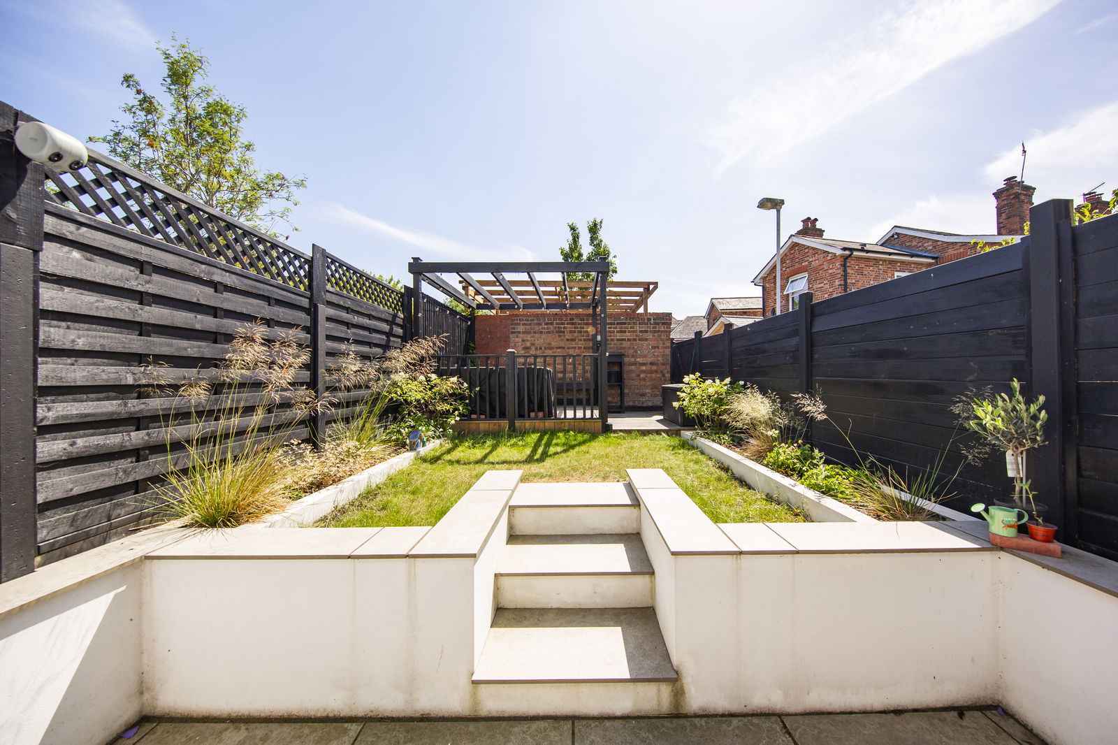 OUTSIDE REAR: The rear garden has been subject to an impressive re-modelling and is accessible from the kitchen/dining area. It has an attractive lower maintenance area with feature paving to the immediate rear of the property affording space for garden furniture and entertaining. Steps lead up to a lawned area with further raised beds to either side, There is a combination of retaining wooden fencing and brick walls and a gate to the rear as well as a further raised decked area to the rear, again entirely suitable for entertaining, external power point.