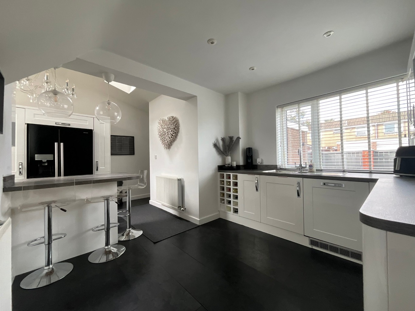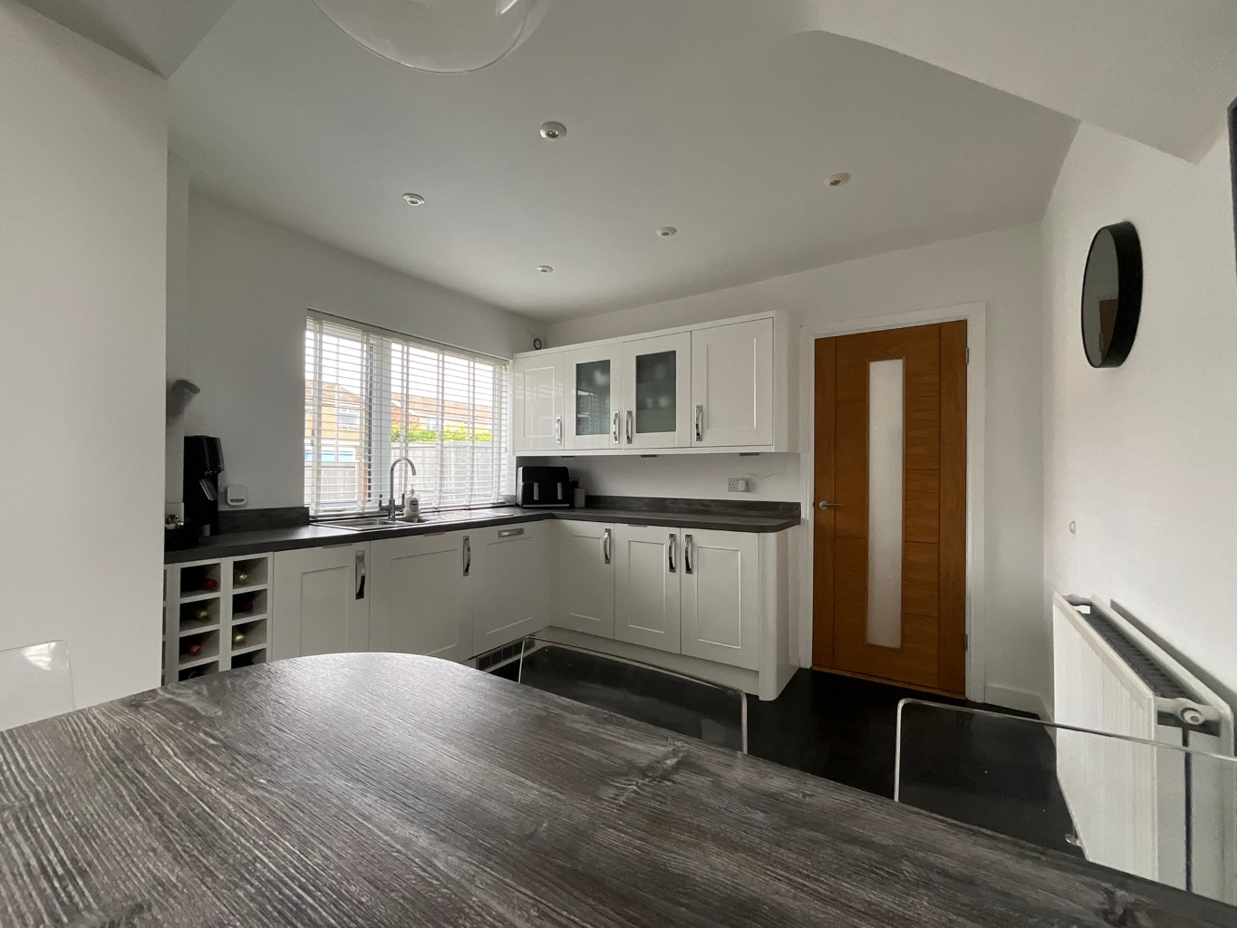 Inside, the ground floor features a spacious, light-filled reception room perfect for family time or entertaining, flowing seamlessly into a well-equipped modern kitchen with ample workspace and storage.