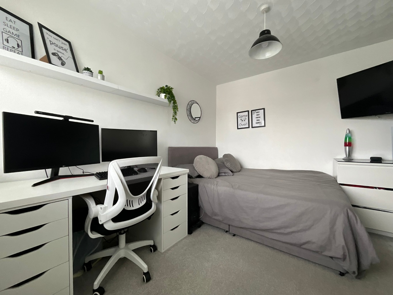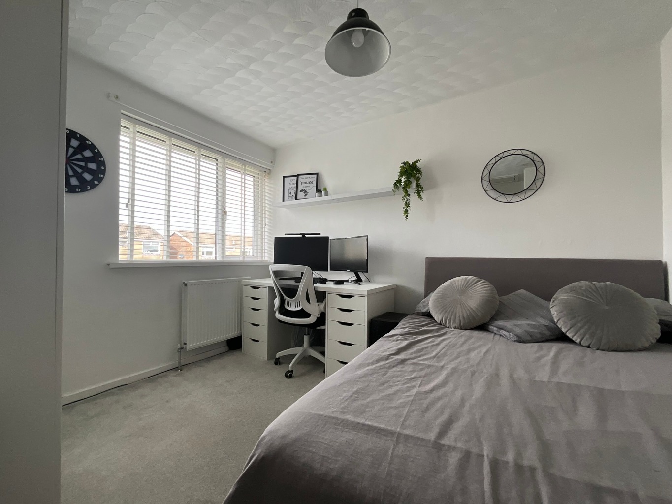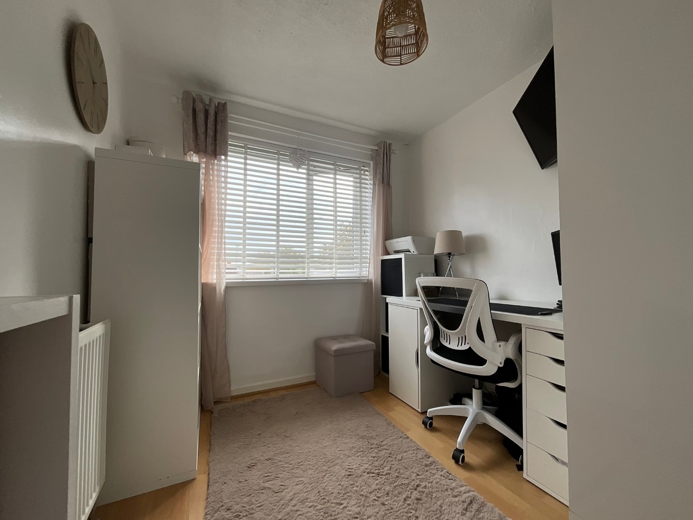Bedroom Two (3.14m x 3.47m)With UPVC double glazed window, storage cupboard, and radiator.