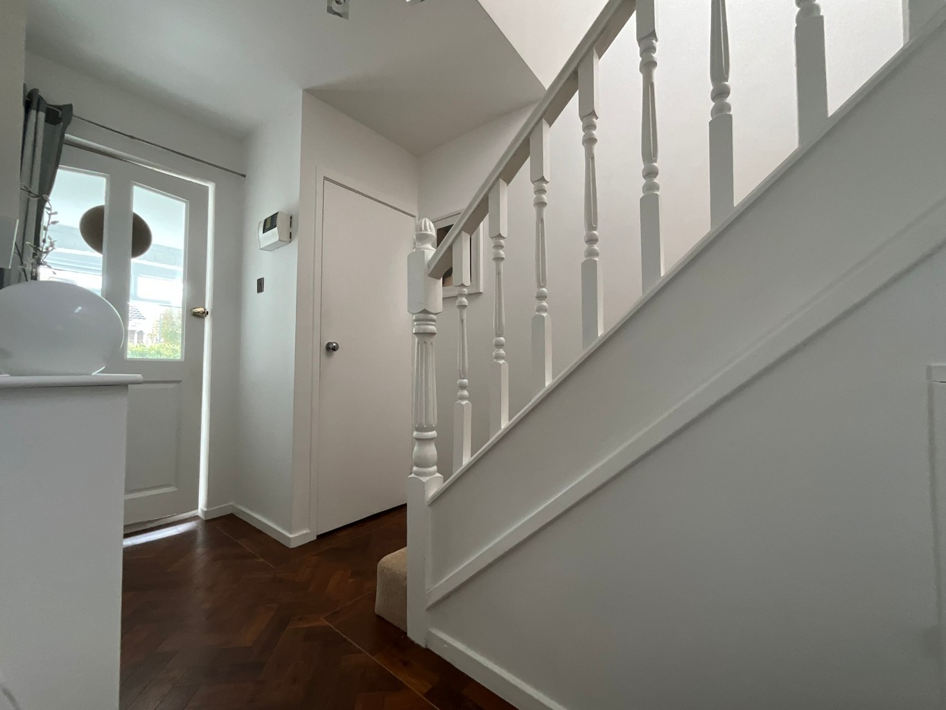 HallwayWith storage cupboard, stairs to first floor landing, Karndean flooring and radiator.
