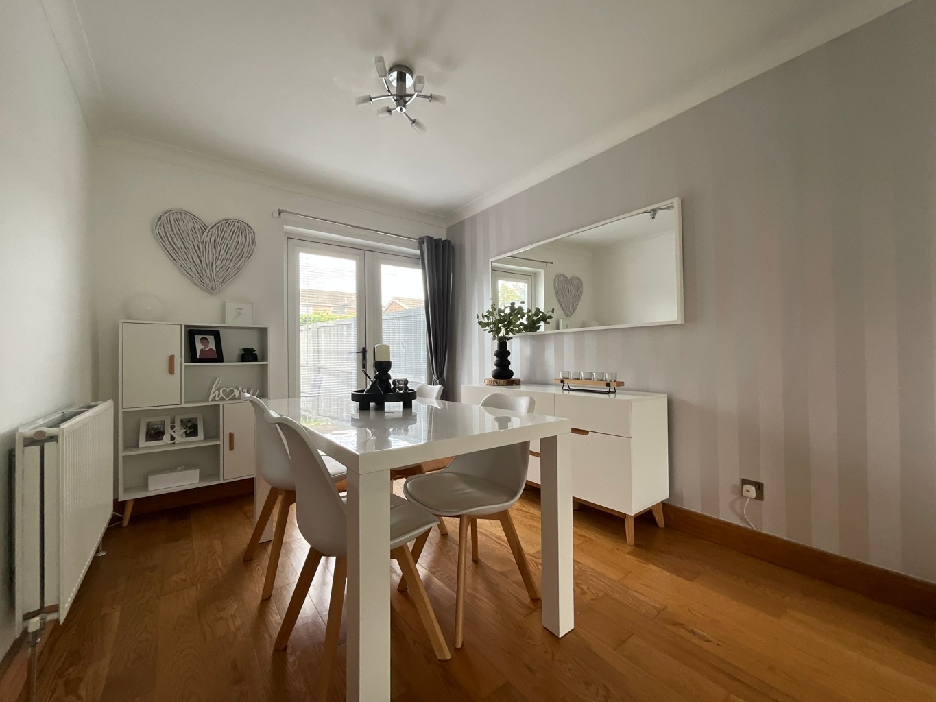 Dining Room (3.08m x 2.52m)With solid wood flooring, coving to ceiling, radiator and UPVC double glazed French doors to rear.