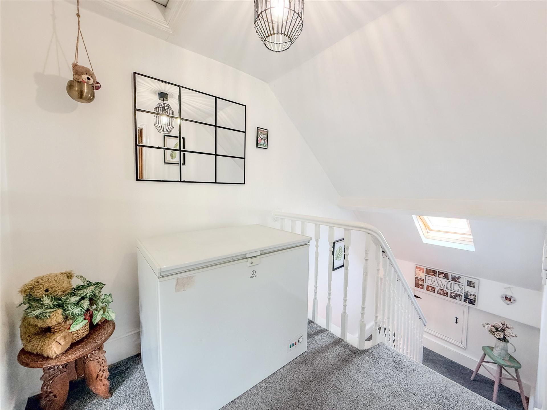 Upstairs, the first floor landing gives access to two generously proportioned double bedrooms. The main bedroom enjoys ceiling coving, while the second bedroom is enhanced by a charming, decorative traditional style fireplace. A luxurious and beautifully finished bathroom completes this level, showcasing a freestanding roll-top bath the perfect retreat for relaxation.