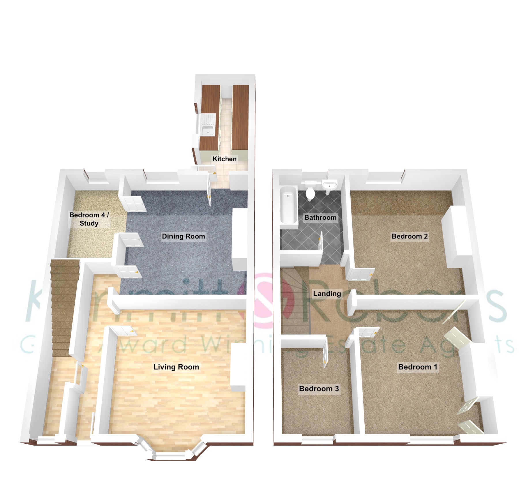 GROUND FLOORHallwayLiving Room (4.20m x 4.20m)Dining Room (3.70m x 4.50m)Bedroom 4 / Study (2.70m x 3.40m)Kitchen (4.00m x 1.80m)