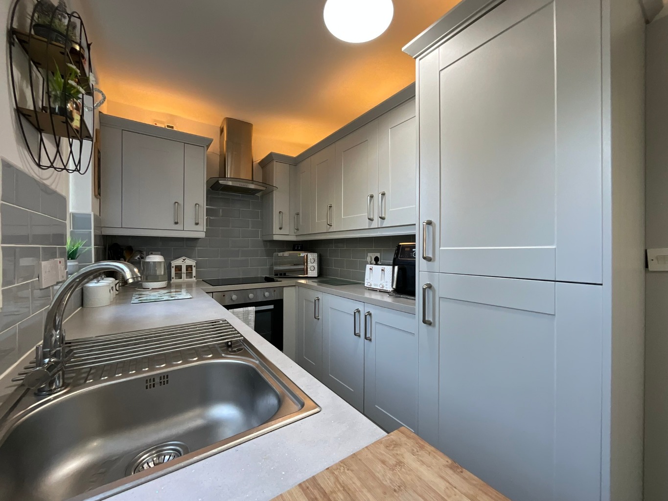 The ground floor features a bright and welcoming reception room, ideal for relaxing or entertaining, alongside a well-appointed kitchen offering ample storage and direct access to the rear garden. Upstairs, you’ll find two generously sized bedrooms and a modern family bathroom, creating a comfortable and practical living space.