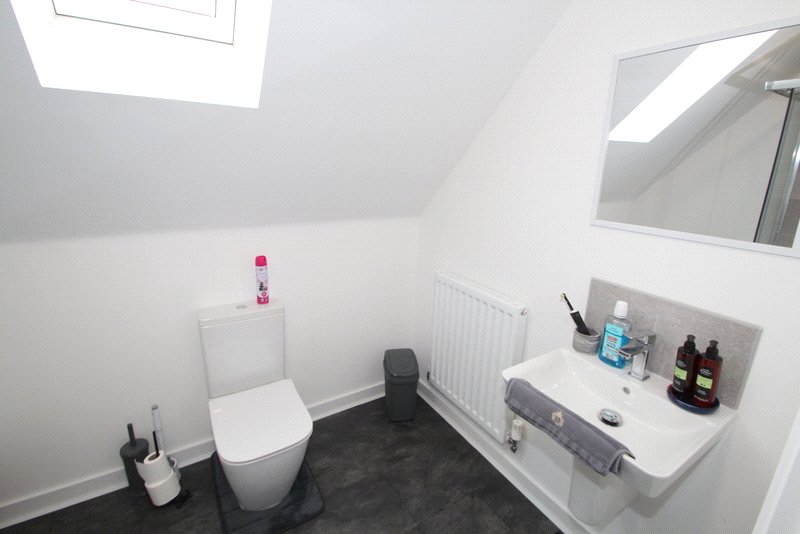 En Suite Shower Room/WC Low level WC, wall hung wash hand basin, separate shower cubicle, fitted mirror, splash tiling, chrome fittings, Velux window.