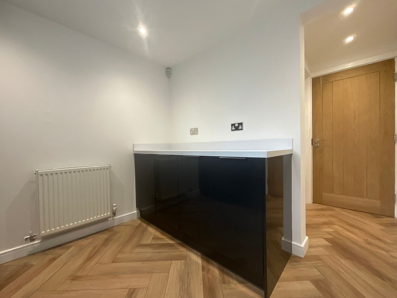 The modern kitchen provides plenty of worktop space and storage, with convenient access to the private rear garden, perfect for outdoor dining or children’s play during warmer months.