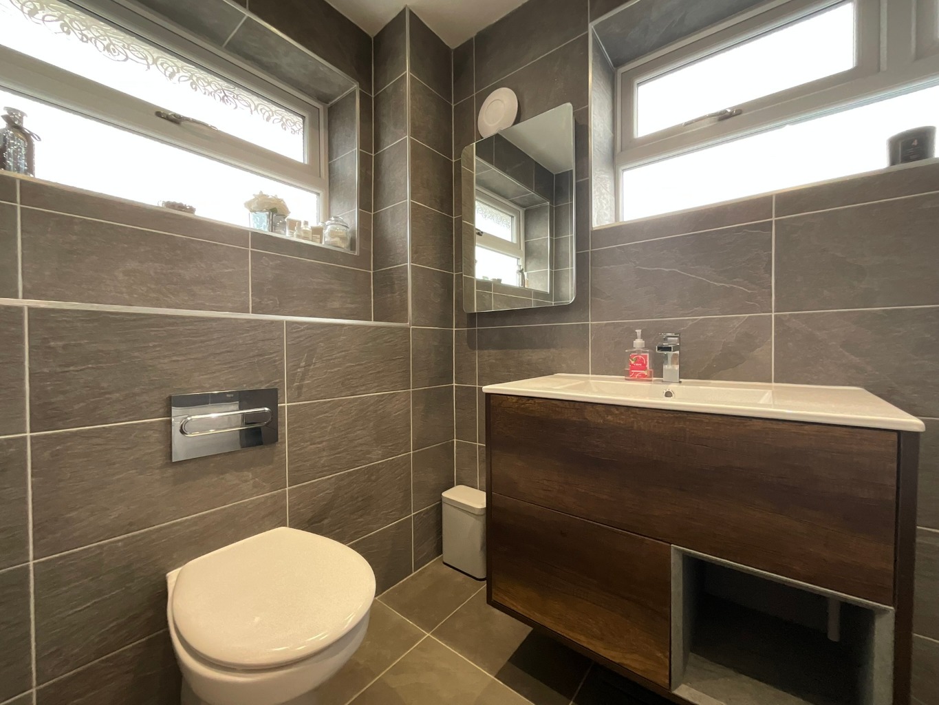 Downstairs WC (1.45 x 1.38)Features: low level WC, pedestal wash basin, radiator.