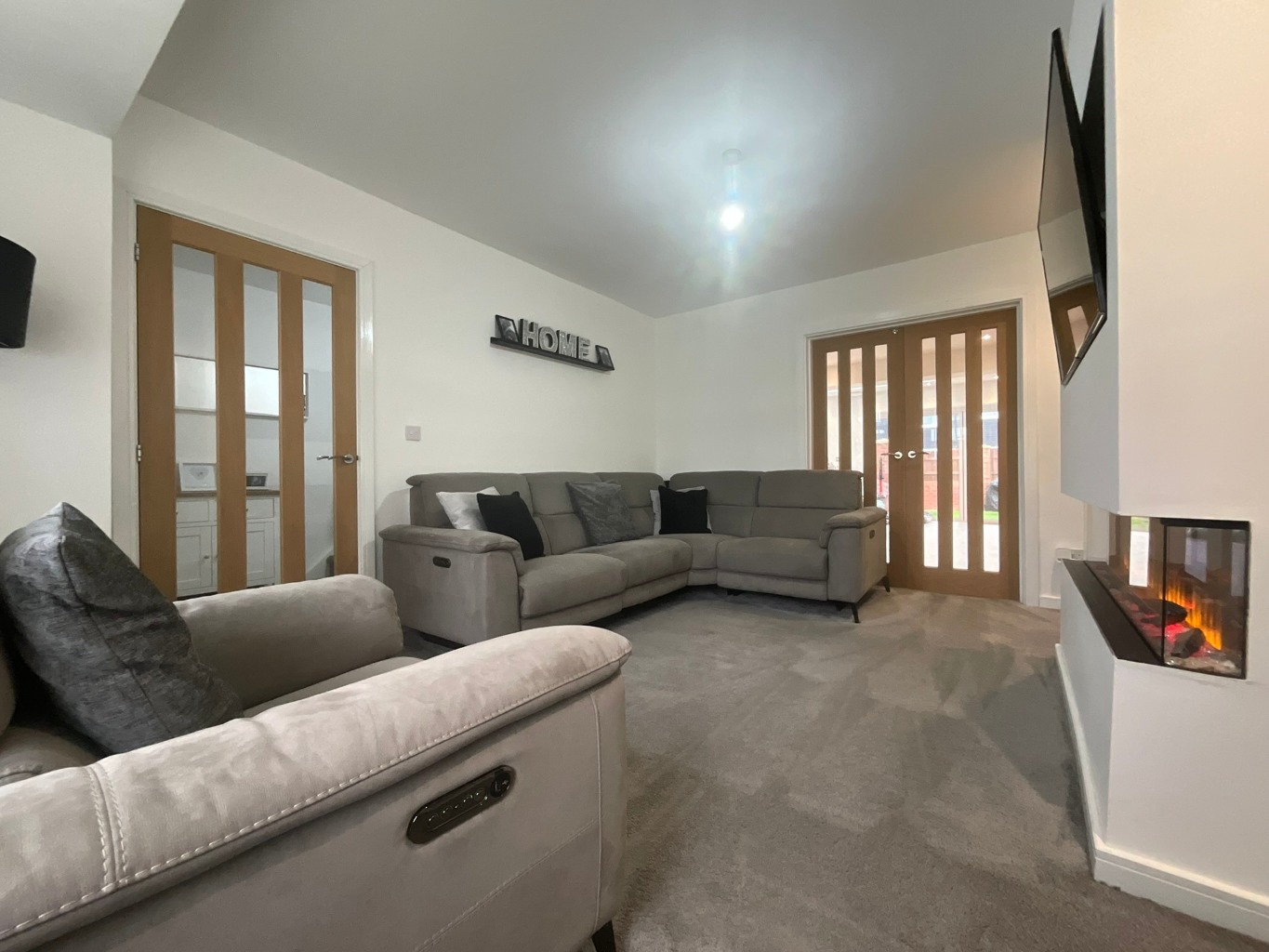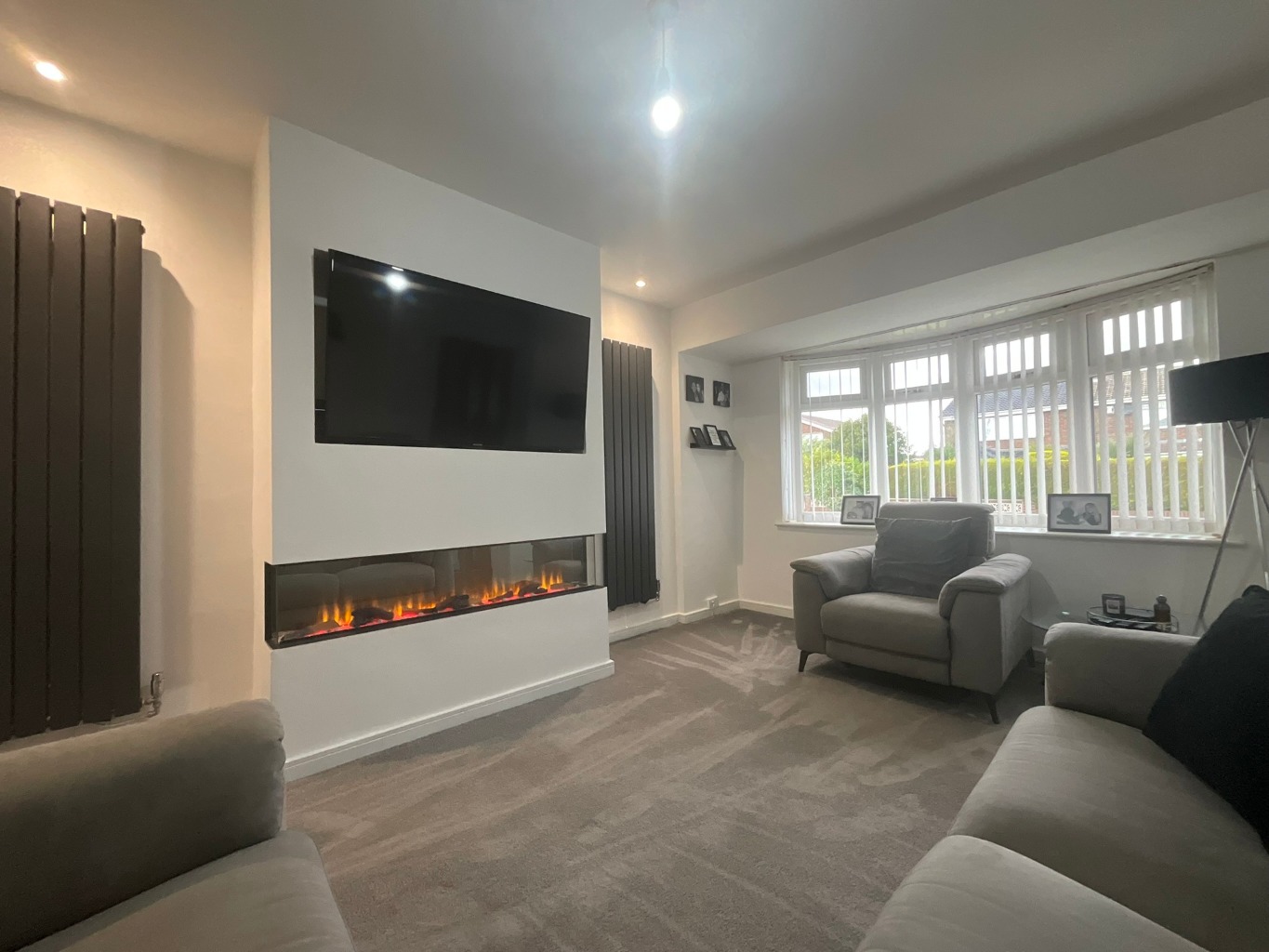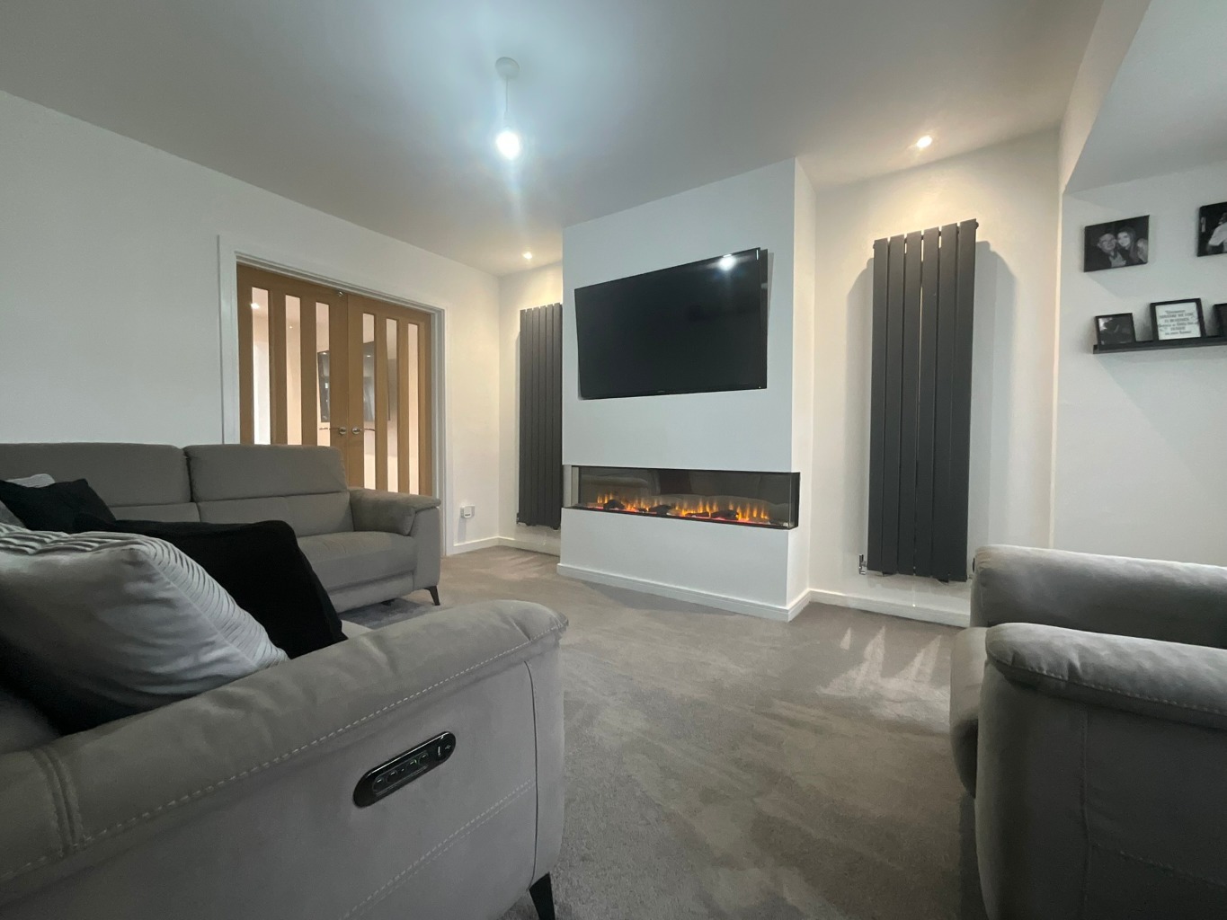 Lounge (3.80 x 3.44)Features: UPVC double glazed bow window, vertical radiator, feature fireplace, spotlights to ceiling, media wall.
