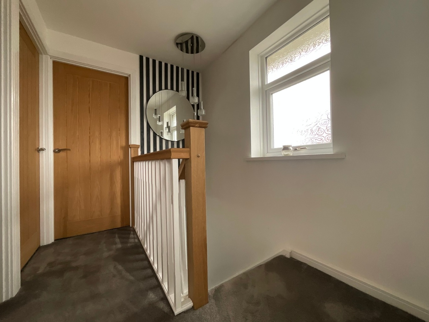 Upstairs, you’ll find three well-sized bedrooms, all filled with natural light and tastefully decorated. The master bedroom is particularly spacious, while the family bathroom features a contemporary suite, completing the upper level.