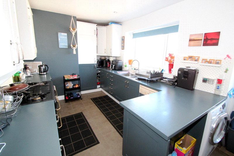 Kitchen 14'6" x 9'3" (4.42m x 2.82m). Well fitted breakfasting kitchen with range of modern wall and floor units, work surfaces to three sides including breakfast bar, stainless steel single drainer sink unit, gas range, splash tiling, double glazed window with roller blind, spot lights, plumbing for washing machine, exit to rear.