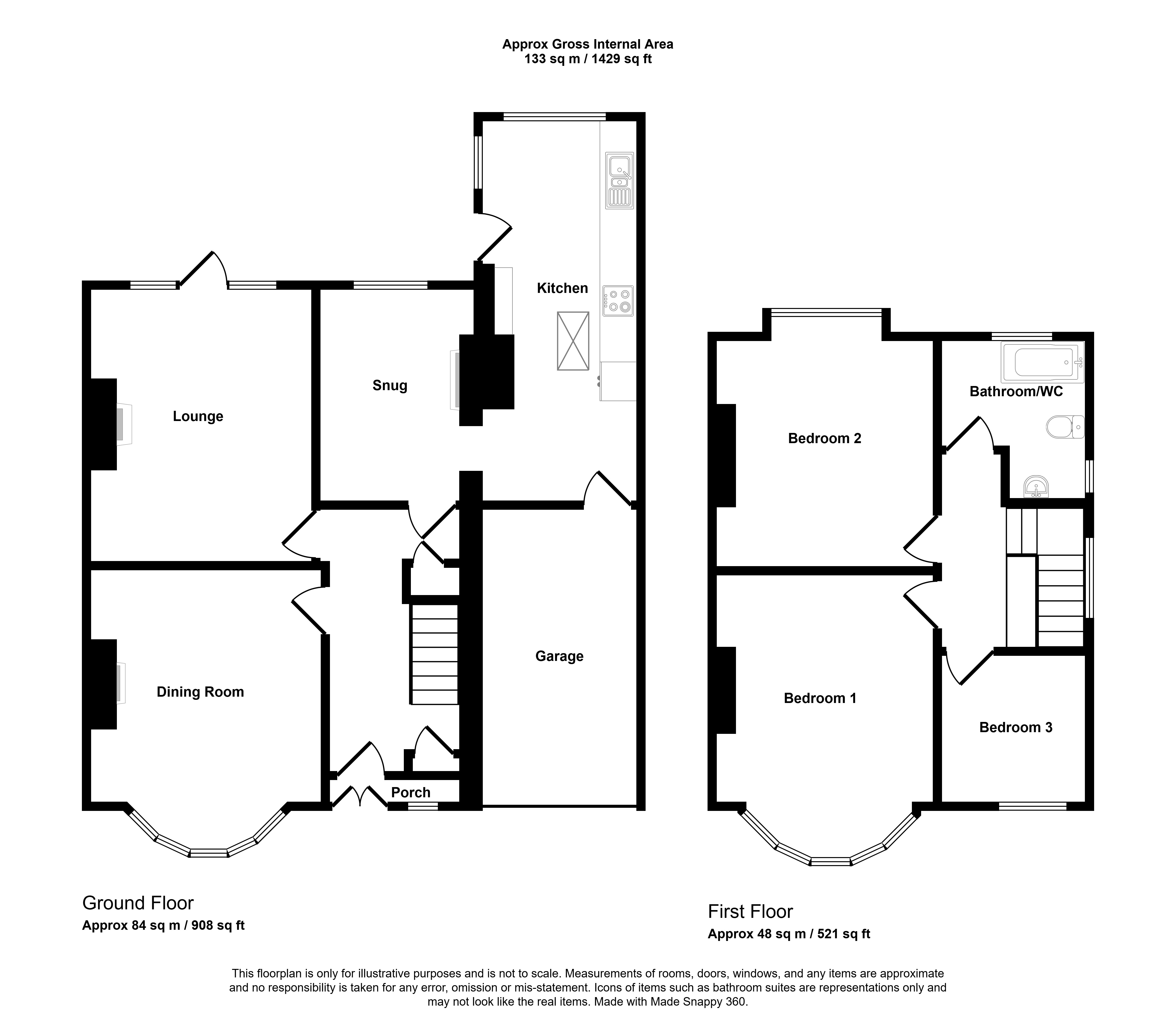 This lovely family home is available with NO ONWARD CHAIN and briefly comprises; entrance vestibule, hallway, cloakroom/WC, dining room, lounge, snug and EXTENDED REFITTED KITCHEN. Upstairs there are three bedrooms and a modern bathroom/WC. Front and rear gardens and block paved driveway for off street parking plus attached garage. Gas central heating and double glazing.